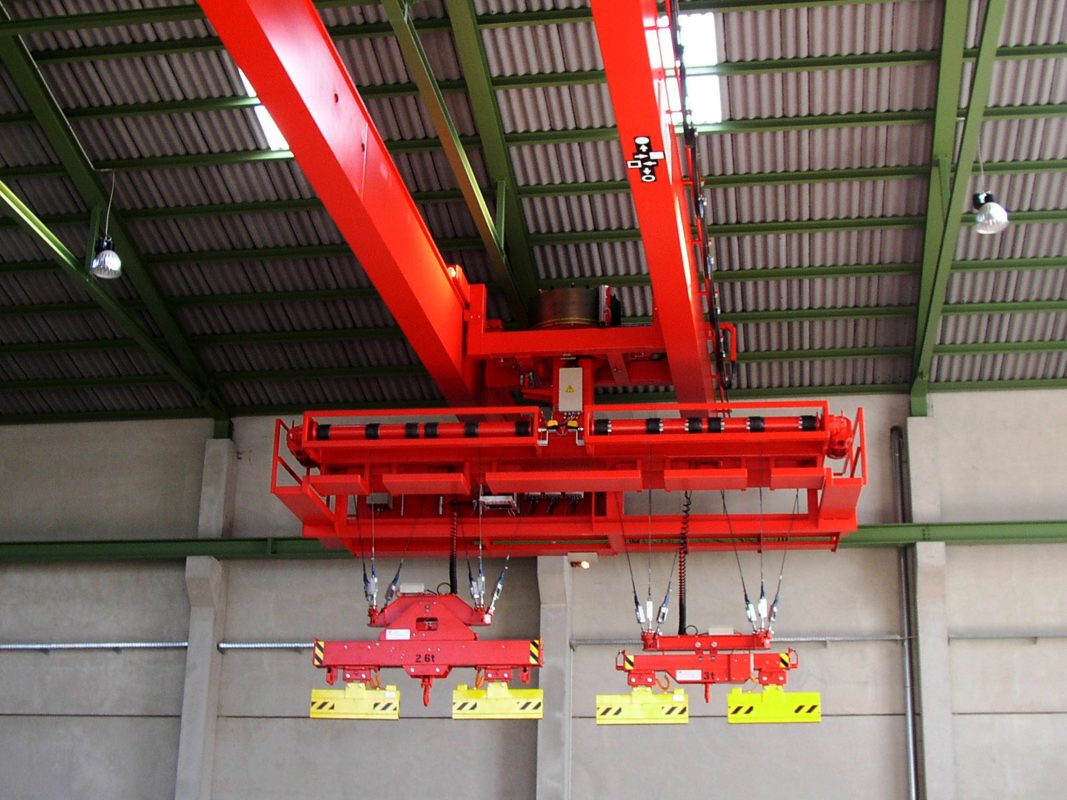 Portal- und Halbportalbauweise, Konsolbauweise - Gehängetypen: Träger-, Bund-, Blech-, Coil- oder Schrottmagnet, wahlweise mit Stapeljochaufnahme oder Blechpaketgreifer