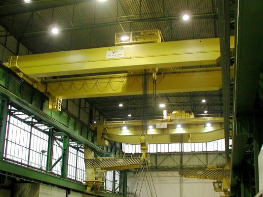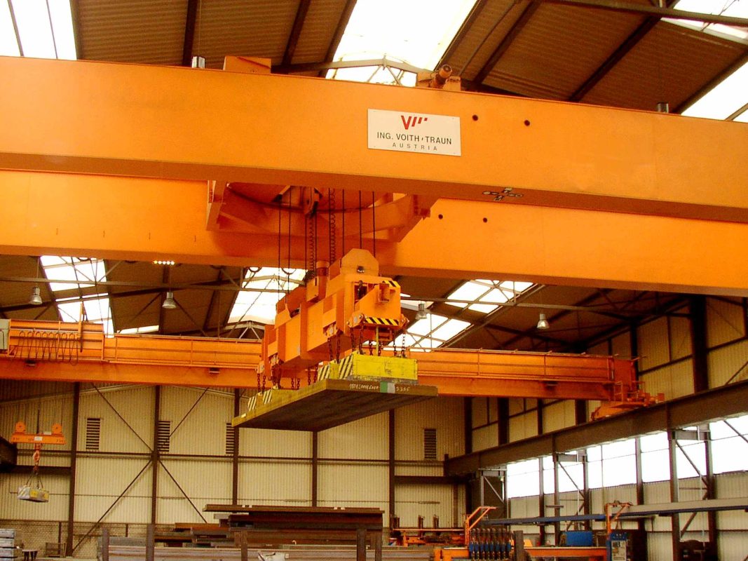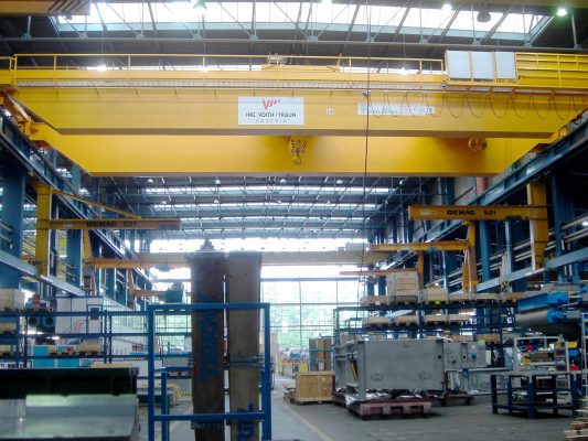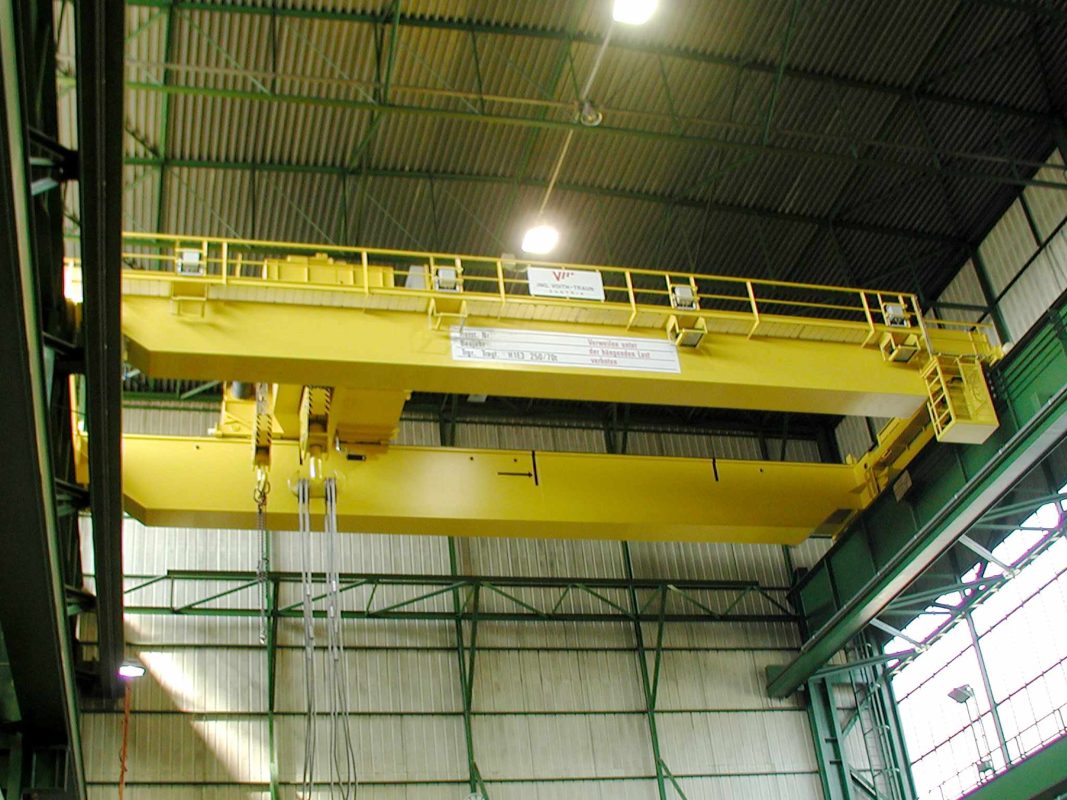 Gerade bei Schwerlastkränen ist das Frequenzumrichterhubwerk mit Leistungsregelung besonders wirtschaftlich. Meistens wird ein Schwerlastkran nicht ständig mit der Nennlast, sondern häufig mit geringeren Lasten betrieben. Mit unserer Leistungsregelung kann bei Teillasten bis ca. 25% der Nennlast eine bis zu dreifache Vollast-Hubgeschwindigkeit erreicht werden. Somit wird die Hubantriebsleistung besser ausgelastet und der Materialtransport kann rascher erfolgen. Zahlreiche Zusatzkomponenten wie elektronische oder mechanische Pendeldämpfung, Wiegeeinrichtung, Hakendrehwerk, Kabine, Funkfernsteuerung, etc. runden das Programm ab und ermöglichen es, einen optimal auf seine Aufgabe maßgeschneiderten Kran zu verwirklichen.